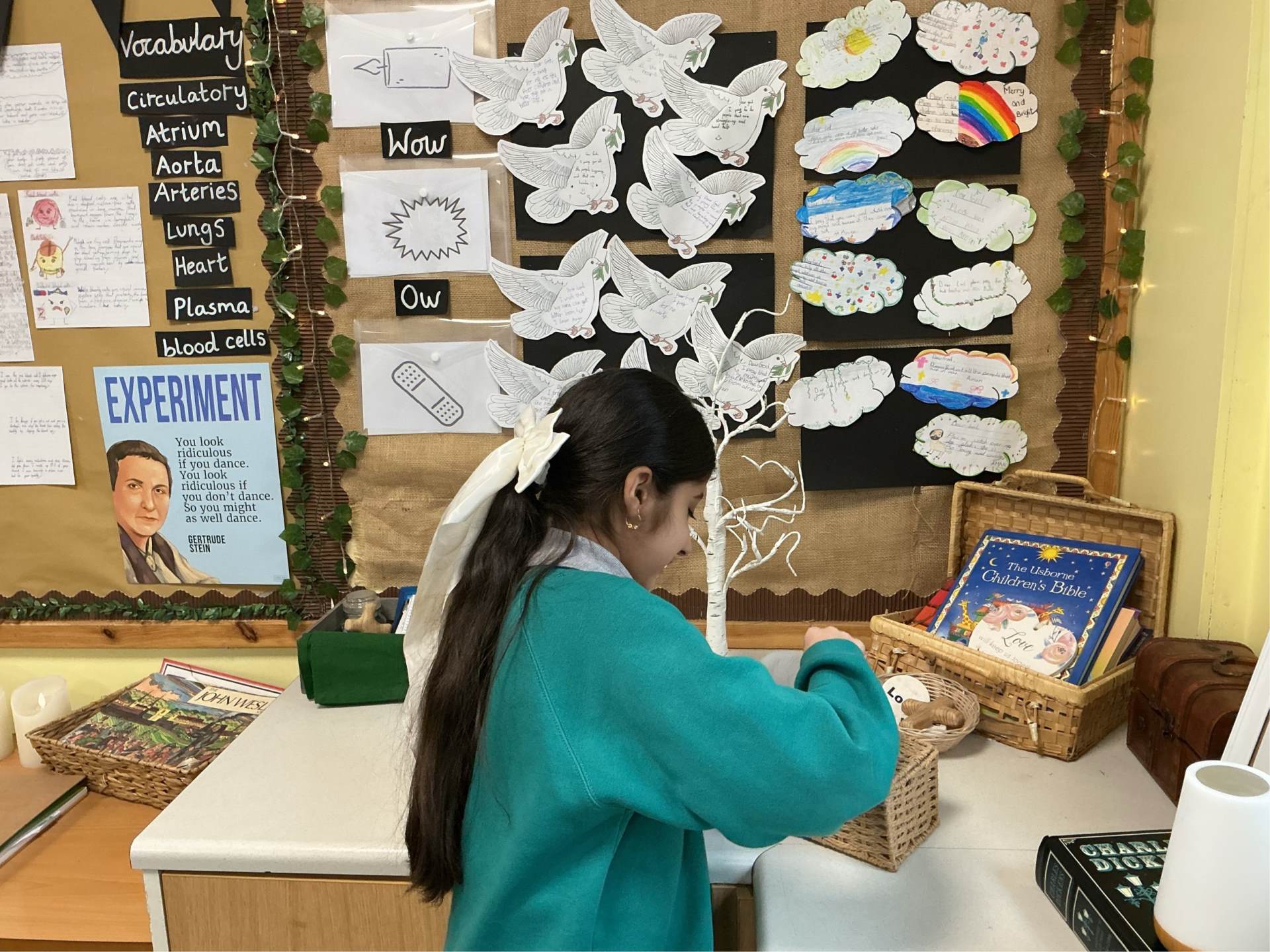 Wheatley Lane Methodist Primary School pupils supported their community in a number of ways, including the worship group dusting chairs and pews at Wheatley Lane Methodist Church. Year 6 pupils litter picked around the village of Fence, Year 5 created cards for elderly residents promoting the Neighbourhood Watch scheme with the local PCSO, and Year 2 pupils planted seeds in the EYFS outdoor area and made bags of wildflower seeds to distribute to members of the church congregation.